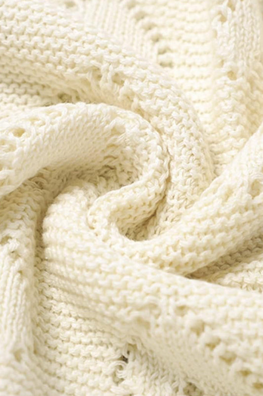 Kız Ve Erkek Bebek Için Örgü Bebek Battaniyesi Basics Krem