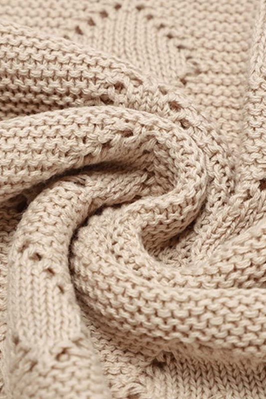 Kız Ve Erkek Bebek Için Örgü Bebek Battaniyesi Ajurlu Kalp Açık Kahve