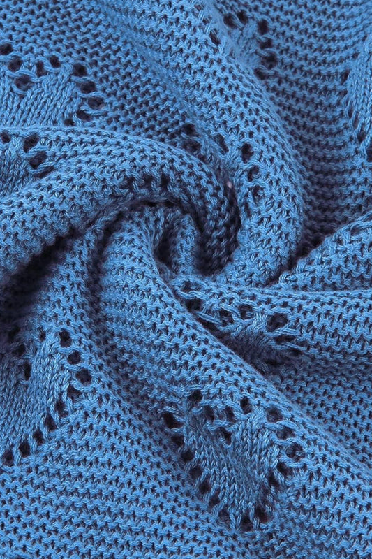 Kız Ve Erkek Bebek Için Örgü Bebek Battaniyesi Ajurlu Kalp Mavi