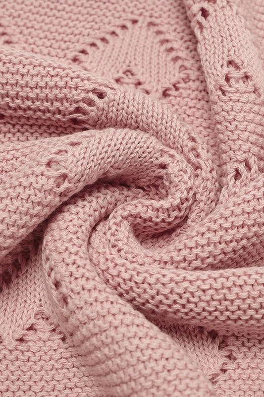 Kız Ve Erkek Bebek Için Örgü Bebek Battaniyesi Ajurlu Kalp Pembe
