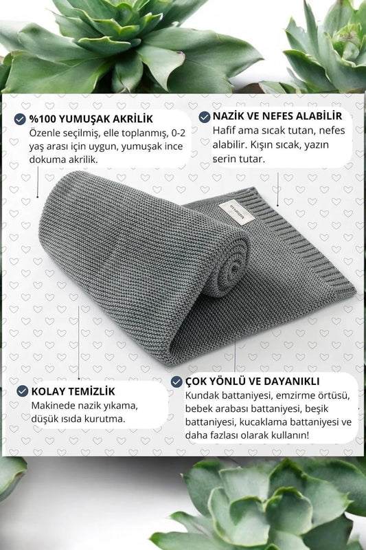 Kız Ve Erkek Bebek Için Örgü Bebek Battaniyesi Basics Gri