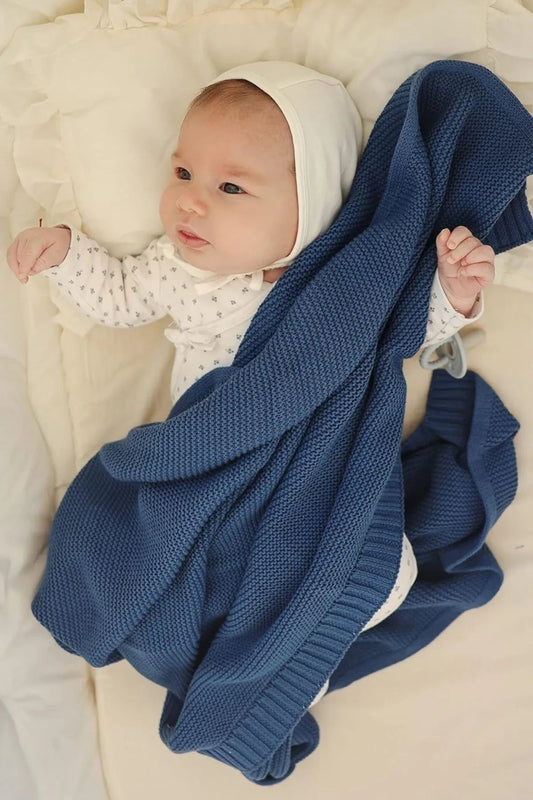 Kız Ve Erkek Bebek Için Örgü Bebek Battaniyesi Basics Indigo