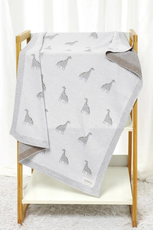 Kız Ve Erkek Bebek Için Örgü Bebek Battaniyesi Dinocuk Açık Gri