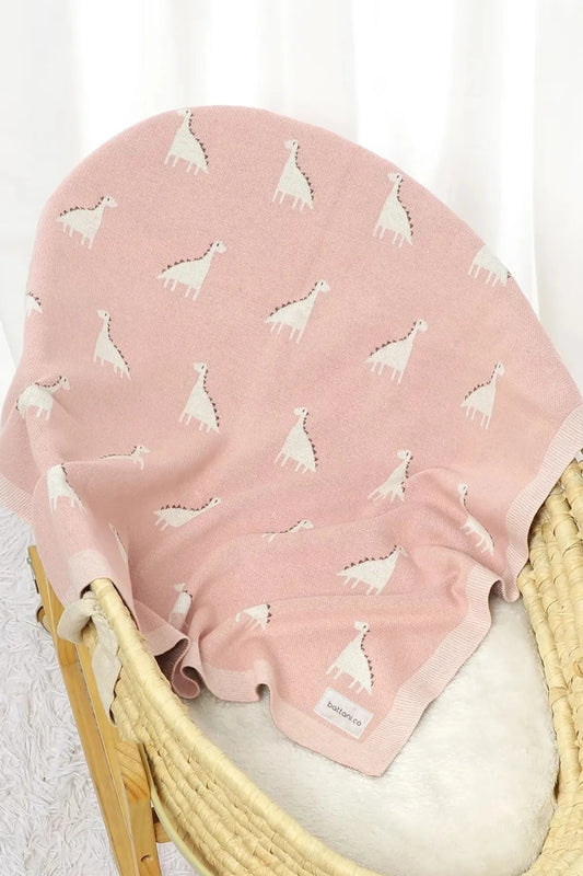 Kız Ve Erkek Bebek Için Örgü Bebek Battaniyesi Dinocuk Pembe